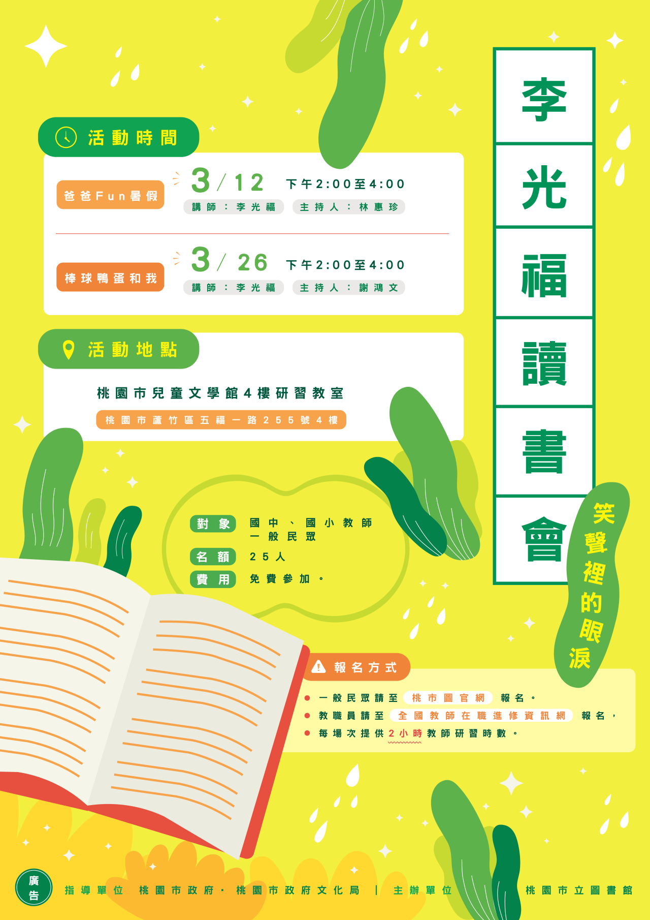 | (一) | 3/12「笑聲裡的眼淚」李光福讀書會—《爸爸Fun暑假》 |
