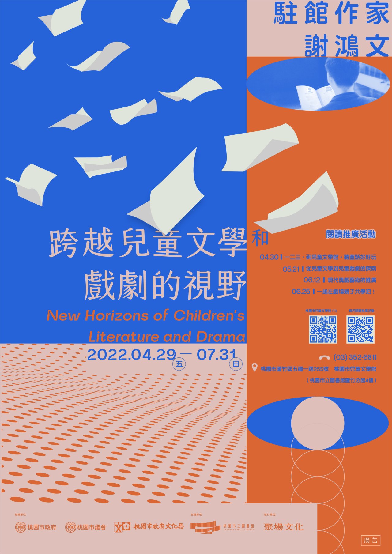 一、 | 旨揭展覽特邀請兒童文學作家謝鴻文展出,展覽期間自4月29日起至7月31日於桃園市兒童文學館(桃園市蘆竹區五福一路255號4樓),並辦理閱讀推廣系列講座,另訂於4月29日(五)辦理開幕儀式,歡迎蒞臨參加。 |