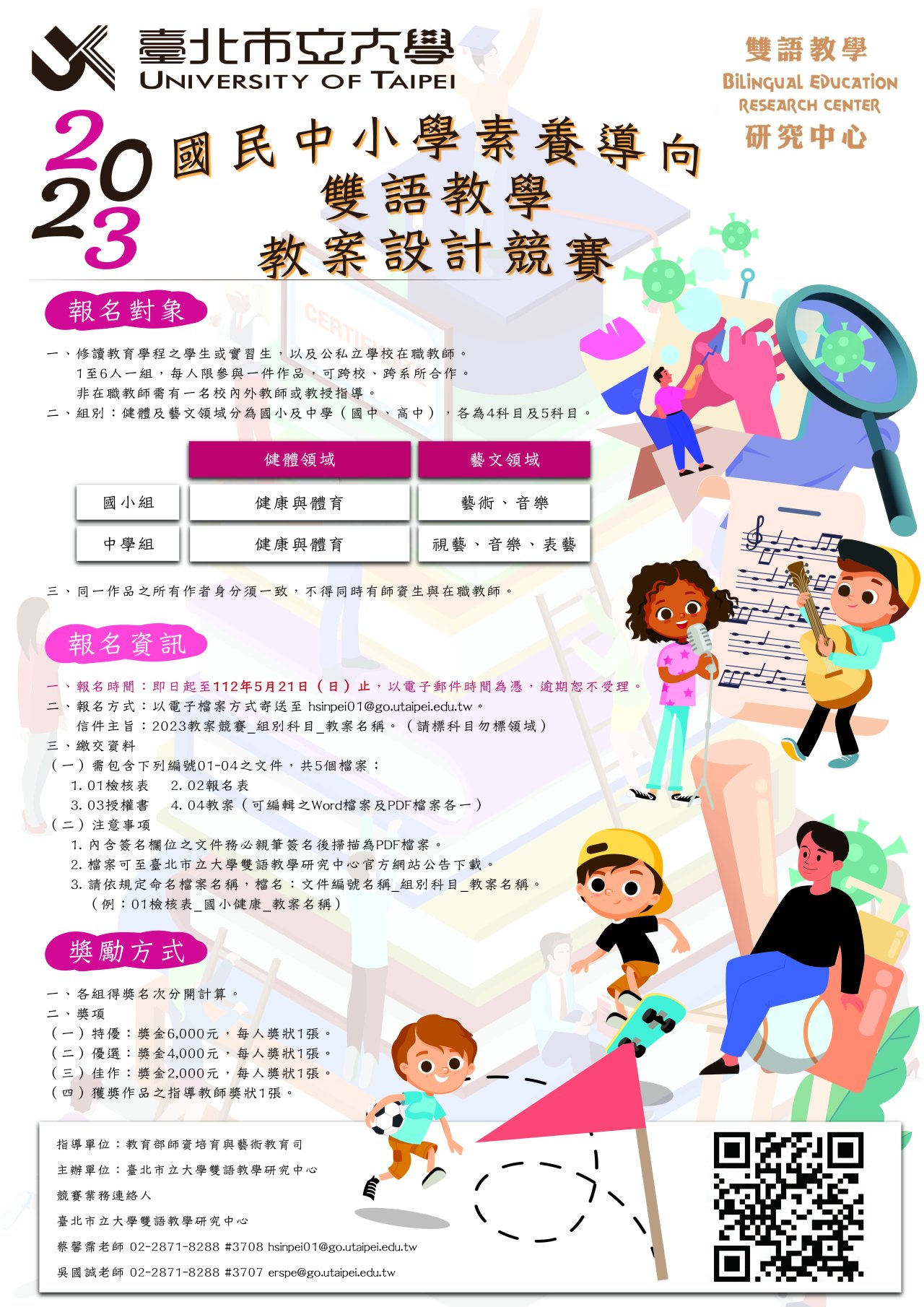 三、詳細規定請參閱附件,相關所需檔案可於臺北市立大學雙語教學研究中心官方網站最新消息下載: https://berc.utaipei.edu.tw/ 。