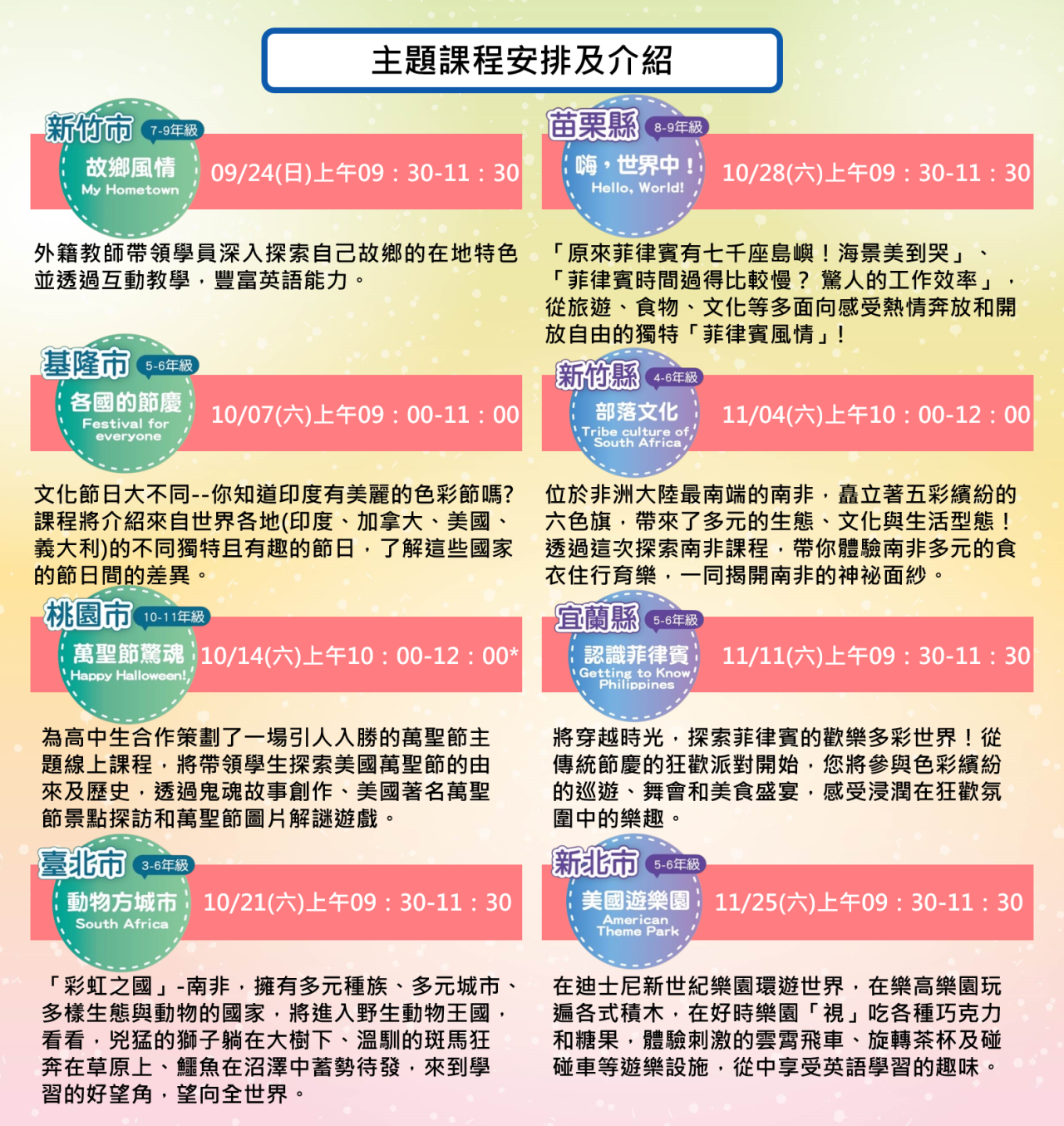 四、活動時間:112年9至12月一般假日辦理,每梯次2小時。