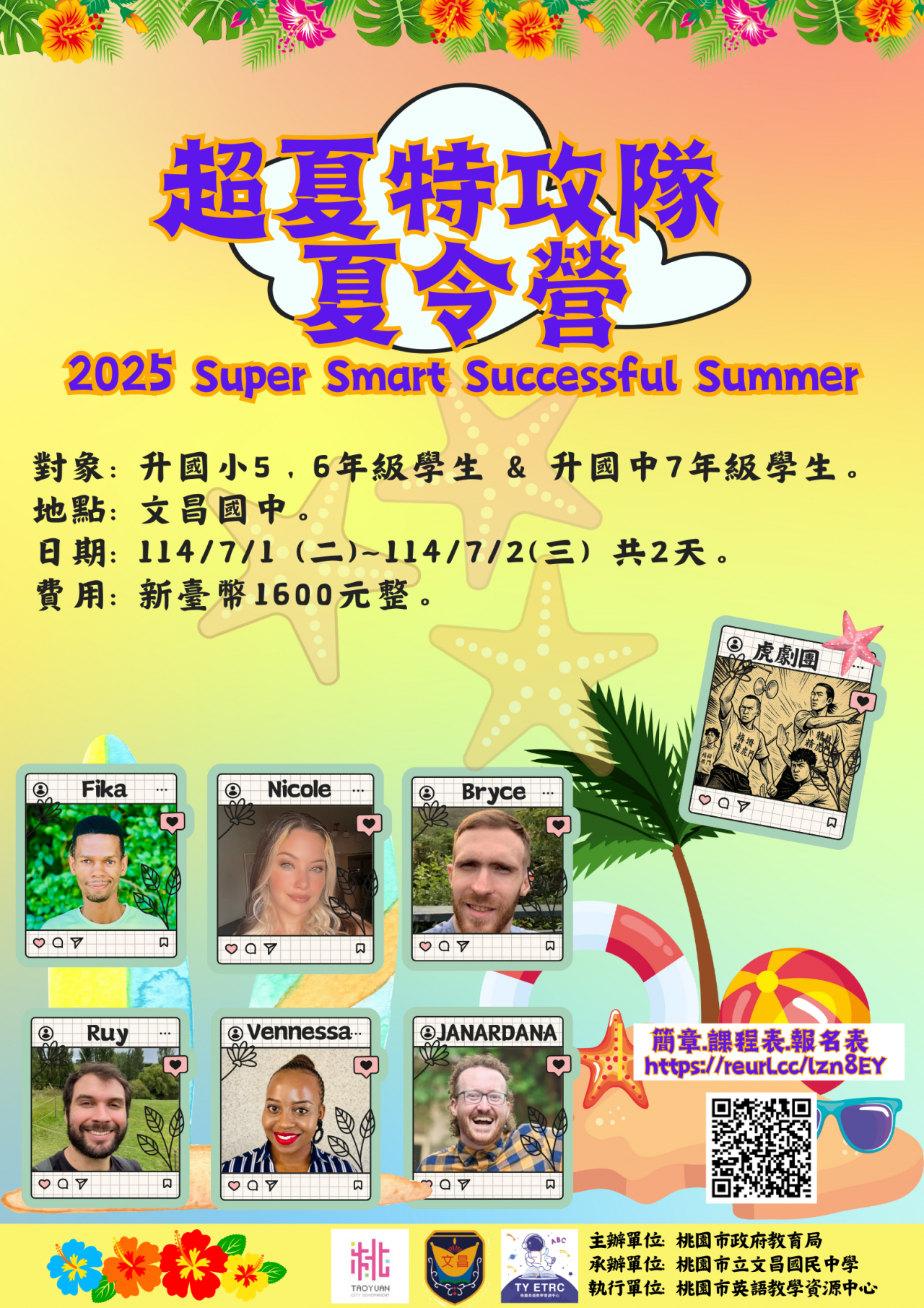 (一) 活動時間:114年7月1日(星期二)至114年7月2日(星期三)共計2日課程,自每日上午8時30分至下午3時40分。