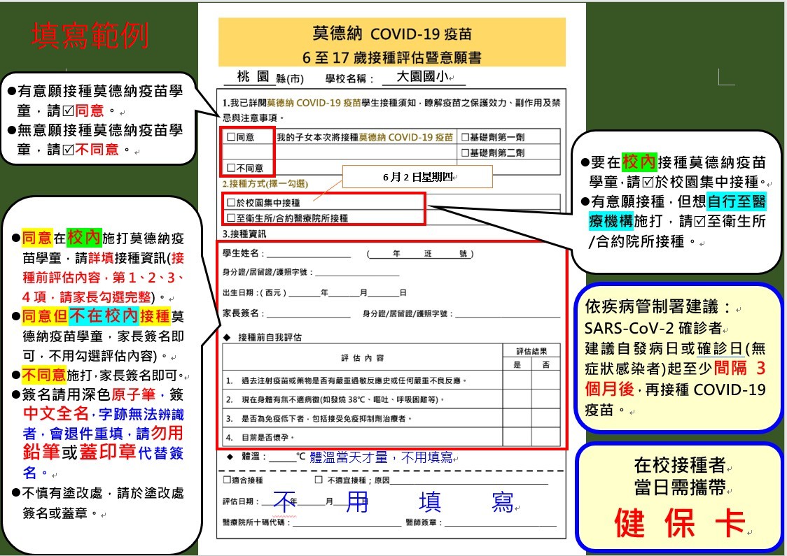 1. 莫德納 COVID-19 疫苗 6 至 17 歲接種須知 (共2張不用交回)。