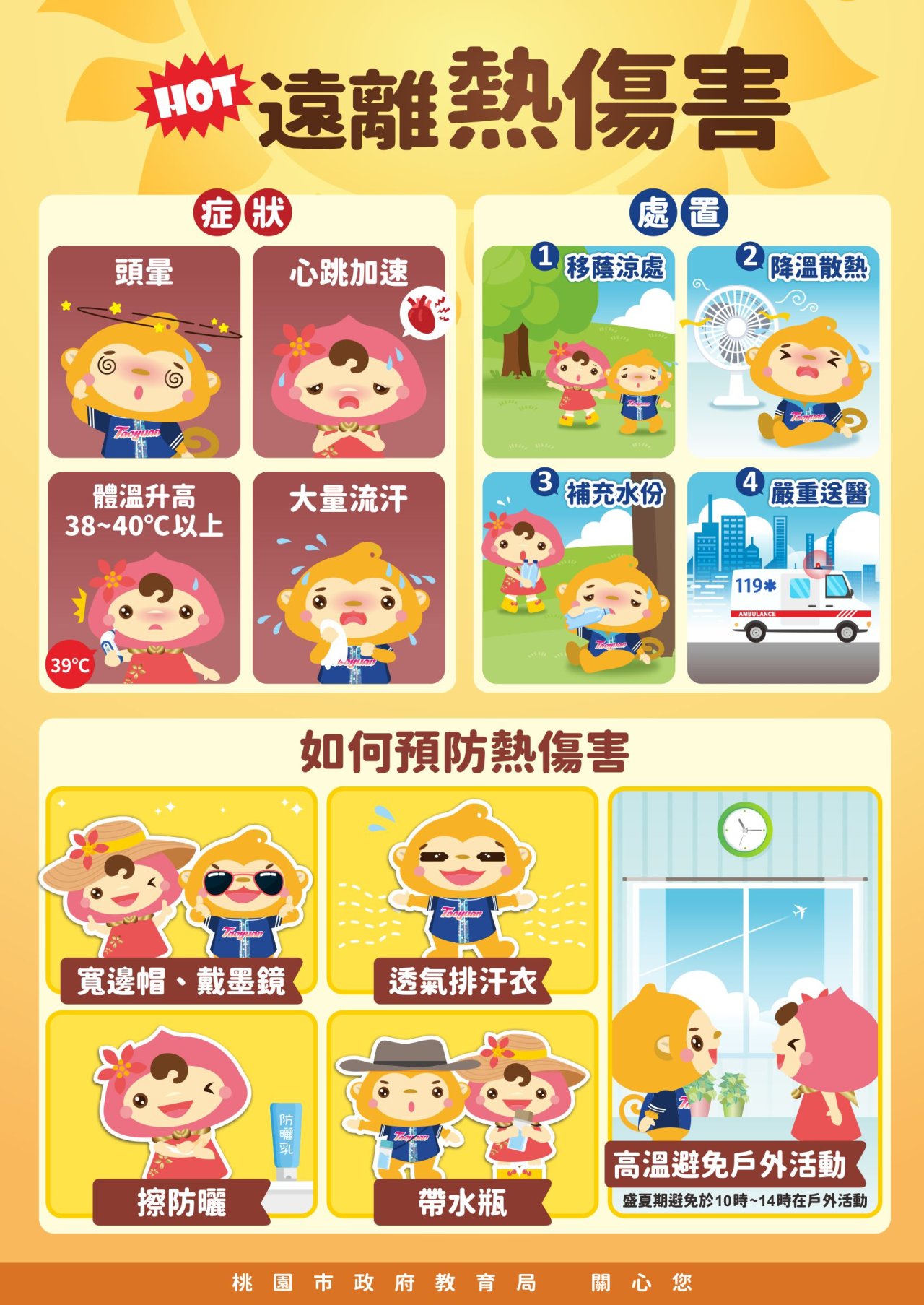| 一、 | 為避免因天氣炎熱,校園發生熱傷害事件,請落實以下熱傷害防護措施: |