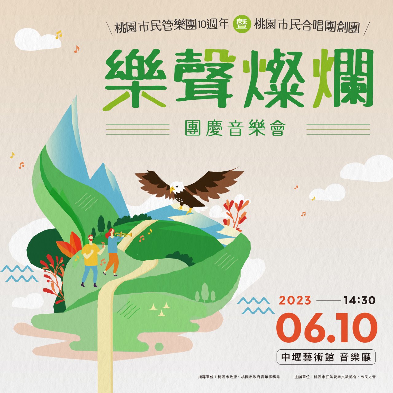 一、活動介紹:本場《樂聲燦爛》團慶音樂會節目中,兩團將分別演繹經典管樂曲目《萬眾一聲》《慶典》、合唱曲目《萬物光彩絢爛》《髻鬃花》,並邀請到青年演奏家呂明驥老師合作中音薩克斯風協奏曲《狂歡》,壓軸由兩團共 同演繹客家名曲《花樹下》、閩南歌謠《望春風》,節目內容精彩可期!盼與各位觀眾共渡美好的午後時光!