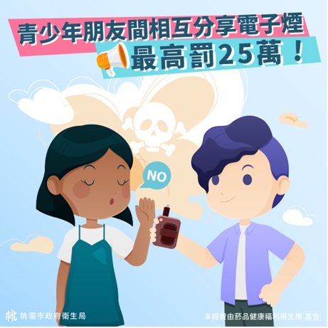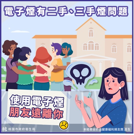 二、為保護本市青少年免於電子煙危害及降低其使用率,該局 製作「電子煙危害」衛教宣導圖卡3篇,希冀以圖象情境提 升其電子煙危害相關識能,建立學生對拒菸技巧及瞭解菸 害防制法規定。