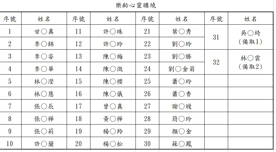 1.公告本期課程錄取名單。