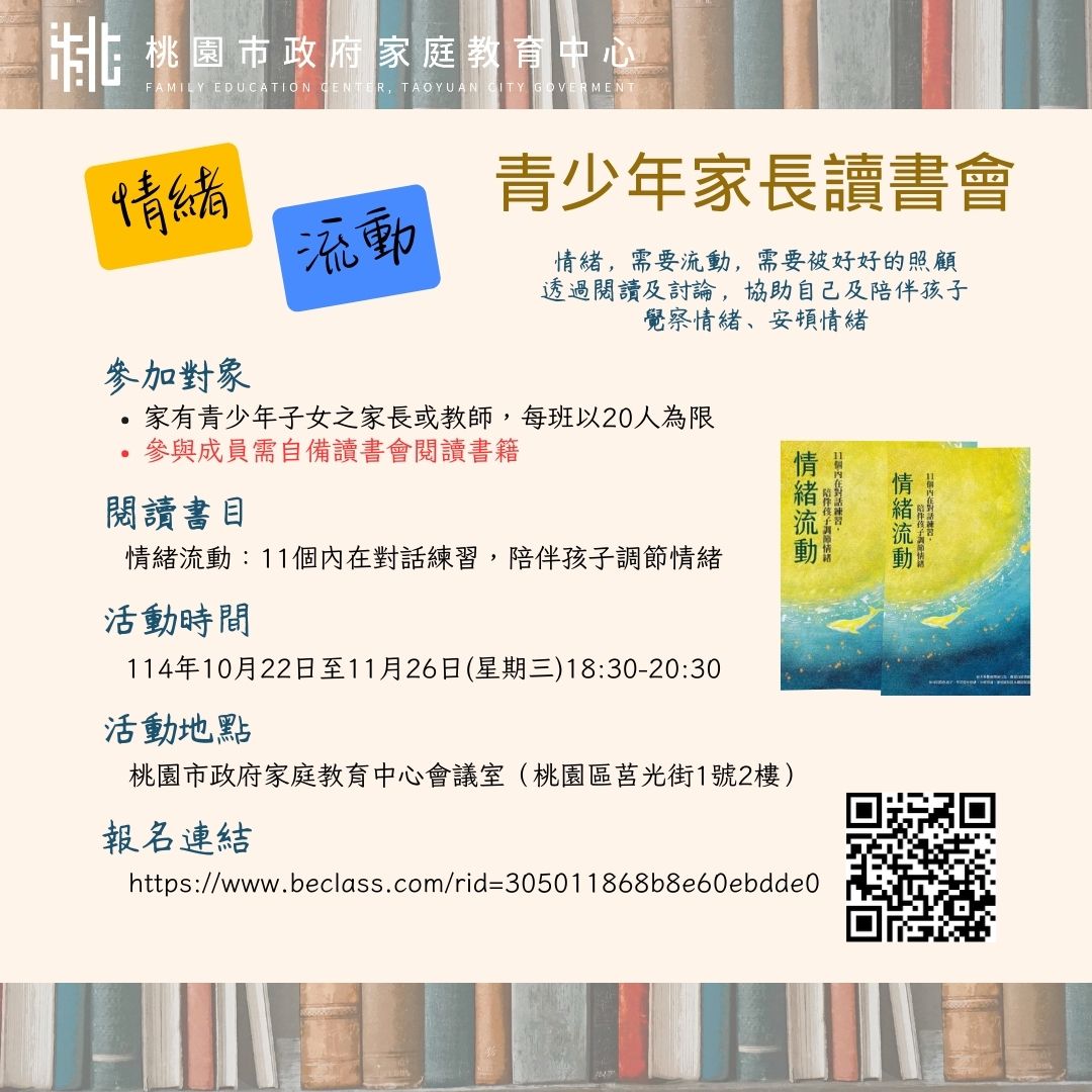 | 二、 | 旨揭課程詳細資訊,請見中心課程行事曆(https://reurl.cc/xlGyGL) 或追蹤「桃園市政府家庭教育中心」FB粉絲專頁;另倘有家庭教育個別化服務需求,可撥打4128185家庭教育諮詢專線,本市市民可申請小桃家線上諮詢室 (預約連結:https://reurl.cc/oZWOY5) ,由中心媒合專業人員透過線上會議室提供服務。 |