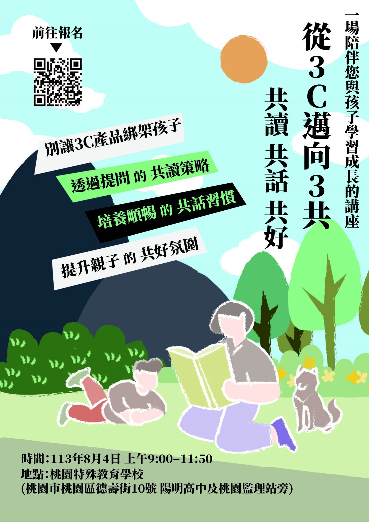二、家長報名請掃描海報QR code;教師報名請上桃園市教育發展資源入口網活動編號E00098-240600004報名研習。